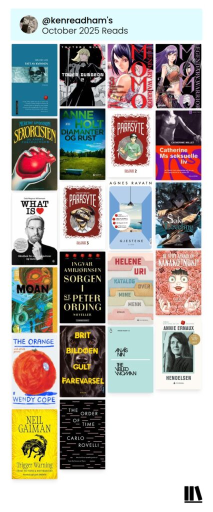 Og her er forsiden til alle bøkene jeg fullførte i oktober: